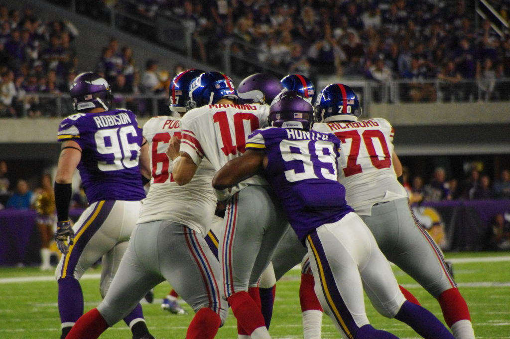 “It all starts with their defense, who once again put in a shift tonight,” he wrote last night. “This was the Vikings’ first game without a sack (a far cry from their eight against Cam Newton), but they still managed to get in Manning’s face all game long.”