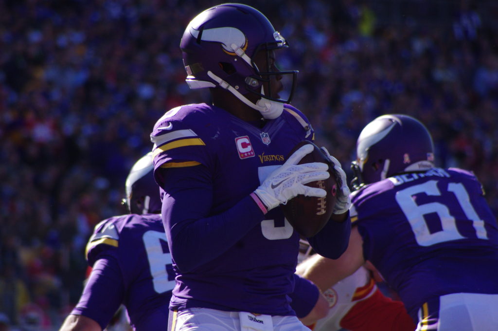 T.J. Clemmings was a liability in both pass protection and run blocking, playing at left tackle as a result of a Matt Kalil injury earlier in the week. Clemmings not only gave up a sack and several pressures, but was losing ground in the running game and more than once gave up the block that led to the tackle. One highlight, though: Bridgewater’s fantastic run for a first down was a result of Clemmings giving him the impetus by escorting a defensive lineman into the pocket.