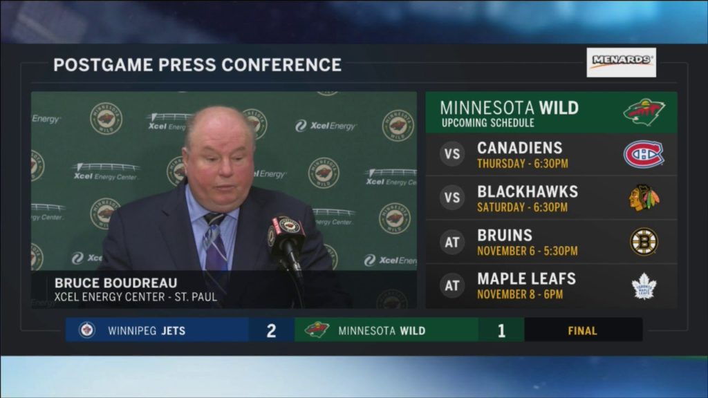 Following Dumba’s worst performance of the season, in which he was benched for the remainder of the game after that giveaway to Ehlers, Boudreau said this on his young blueliner: “He just hasn’t been playing that well. He’s a good player that maybe I’ve set the bar pretty high for him. But he just hasn’t reached that bar. He’s been in this league four years now, he’s gotta do what he does when he’s playing good. There’s a lot of guys [that fall] in that self-preparation, and he’s one of them. He has to come to the game better prepared.”