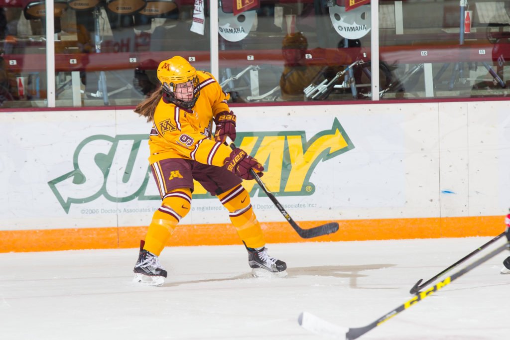After Patti Marshall tied the game on a slap shot 8:22 into the second period, the Gophers took the lead with 1:31 remaining. Pannek heard a wide open Amy and got her the puck with a no-look pass. The freshman finished for Potomak’s first career goal and her 100th career assist.