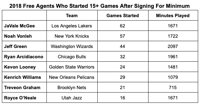 For example, in 2018, only eight players signed contracts that carried a minimum cap hold and went on to start more than 15 games for the team they signed with.