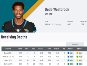 Circling back on the former 2016 Heisman Trophy finalist’s first three years in Jacksonville, Westbrook operated primarily out of the slot. Per Pro Football Focus, Westbrook had 88.4% and 82.7% of his snaps from ’18 and ’19 out of the slot. It’s important to note that Westbrook was on the receiving end of 101 targets during both of those seasons. Westbrook was Jacksonville’s most-targeted receiver in ’18 — his second season in the NFL.