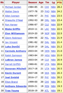 Outside of trading for Ben Simmons, it seems that Edwards will have to make a leap for the Wolves to take the next step forward. Can we expect him to continue his upward trajectory? Or was his rookie season just a flash in the pan? I took a look back through the annals of basketball history to see if there is historical evidence that can give us a hint as to how good Ant might be.