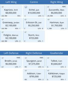 This is exactly why Dumba and Fiala would have to be moved. There isn’t much flexibility, and they would have to open up substantial cap space despite Victor Rask coming off the books next year.