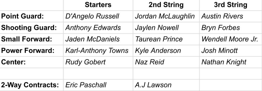 Signing Paschall confirmed my off-season view of the Wolves. They are deep, but just how deep are they? Before we take a look at the reasons why, below is a quick look at what I believe the depth chart to look like for the Timberwolves: