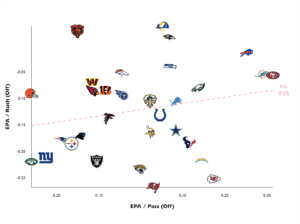 The Falcons have a bottom-tier offense in EPA/pass, with a strong rushing game built on running back Bijan Robinson’s elite talent. The interior defensive line will need to step up to not allow Atlanta to chew clock by rushing the football, and the edges will need to contain Heinicke on his mad scrambles.