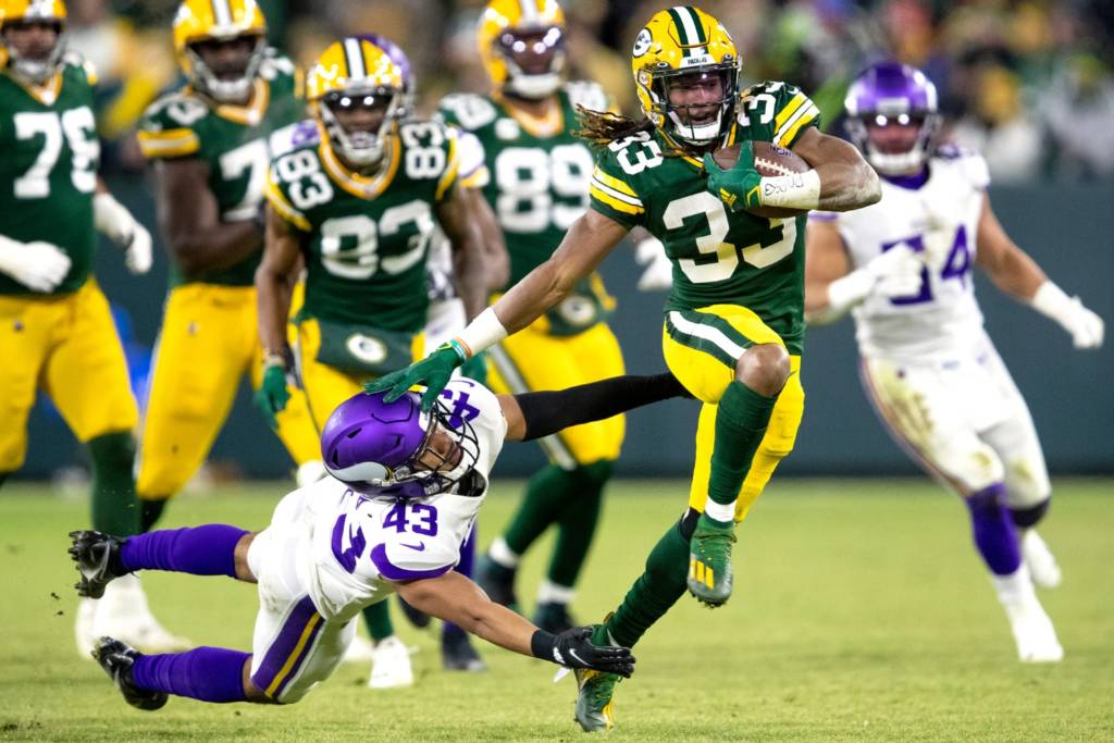 According to Fantasy Pros, Jones is currently being drafted around the 48th pick, sandwiched between his field-stretching teammate Christian Watson and Chicago Bears quarterback Justin Fields. It’ll vary based on how many teams are in your league, but that’s pretty much the fifth round. Detroit Lions rookie Jahmyr Gibbs, who they shockingly selected 12th overall in the real NFL draft, is 11 slots ahead. Despite his consistent annual production, Jones is the 17th running back coming off the board.