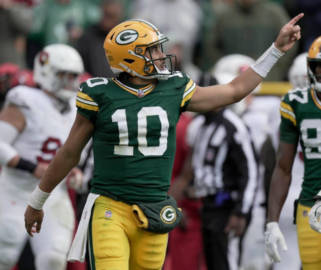 However, Love also gets himself in trouble occasionally. He’s tied for second in the NFL (with only four games played) with six interceptions, behind only Will Levis. Love’s confidence in making tight-window throws can also lead to turnovers. On one of his picks against the Minnesota Vikings, he was trying to throw into a tight window around several defenders to get the ball to Christian Watson.
