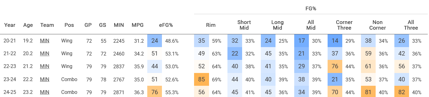 All that is left to see from Edwards’ mid-range this season is how different it is from other seasons. Is there more to it than just offseason noise? And what type of volume can we anticipate from Edwards this season?